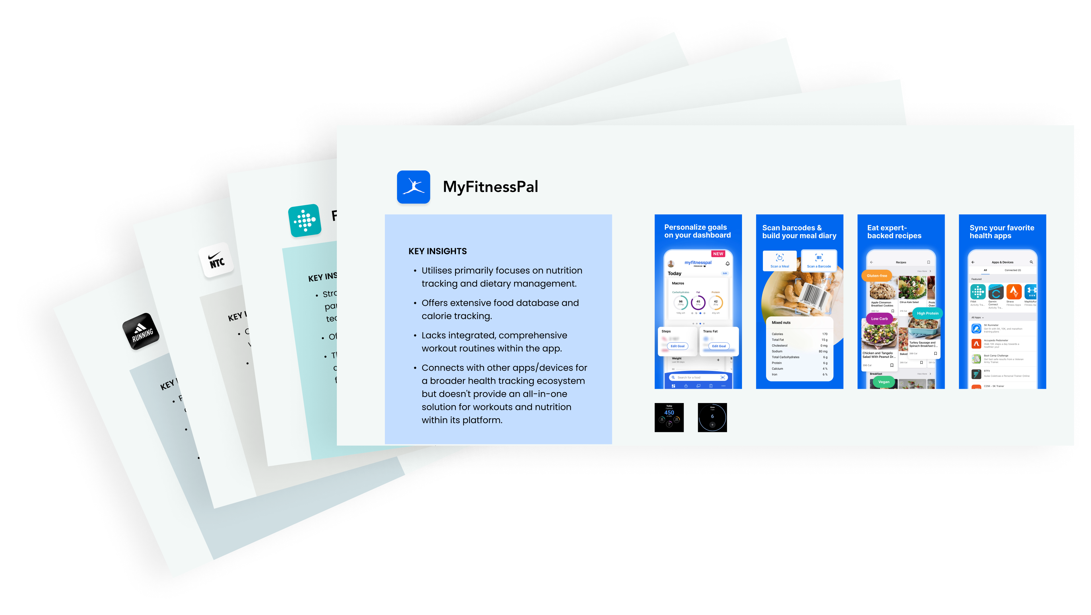 To gain a comprehensive understanding of the market, I carefully evaluated the most popular existing fitness and nutrition apps, such as MyFitnessPal, Fitbit, Nike Training Club and Adidas Running.