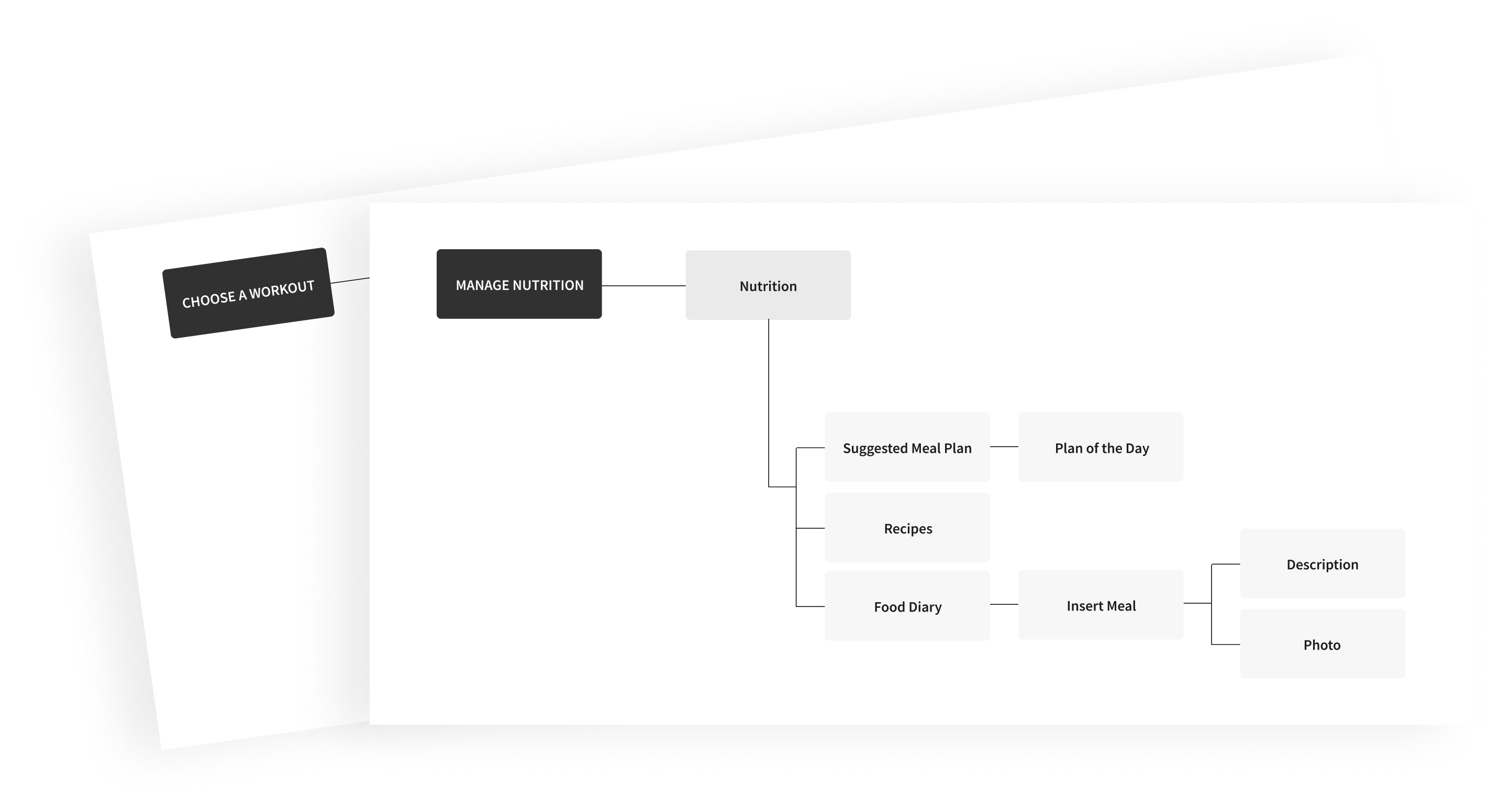 Information Architecture focuses on organising, structuring, and labeling content in an effective and sustainable way. The goal is to help users find information and complete tasks efficiently. For FITFORCE, a well-planned IA ensures that users can easily navigate between workout routines, meal plans, and progress tracking without feeling overwhelmed.