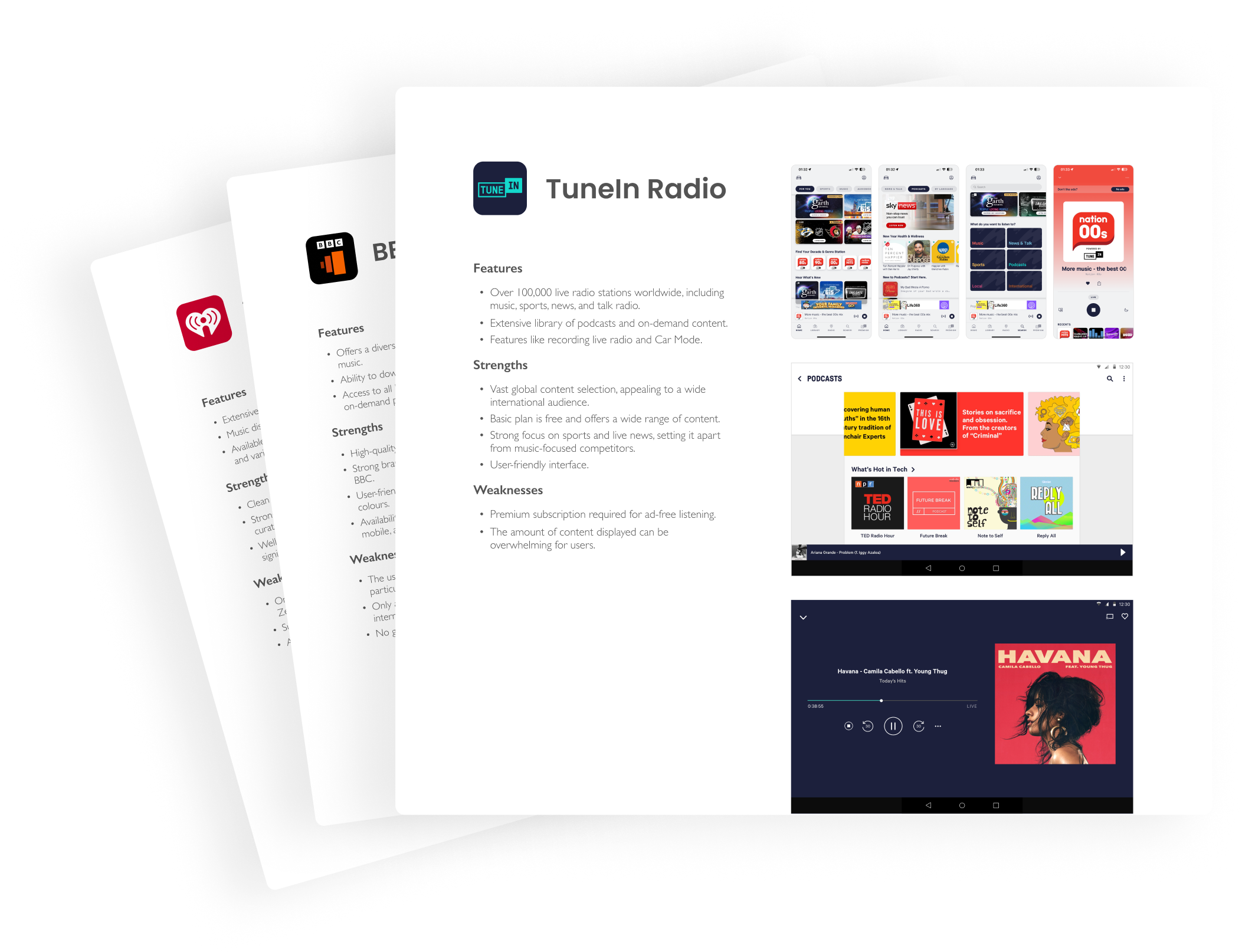 I conducted a competitive research to examine some of the key players in the internet radio industry, such as iHeart, BBS Sounds and TuneIn Radio.
