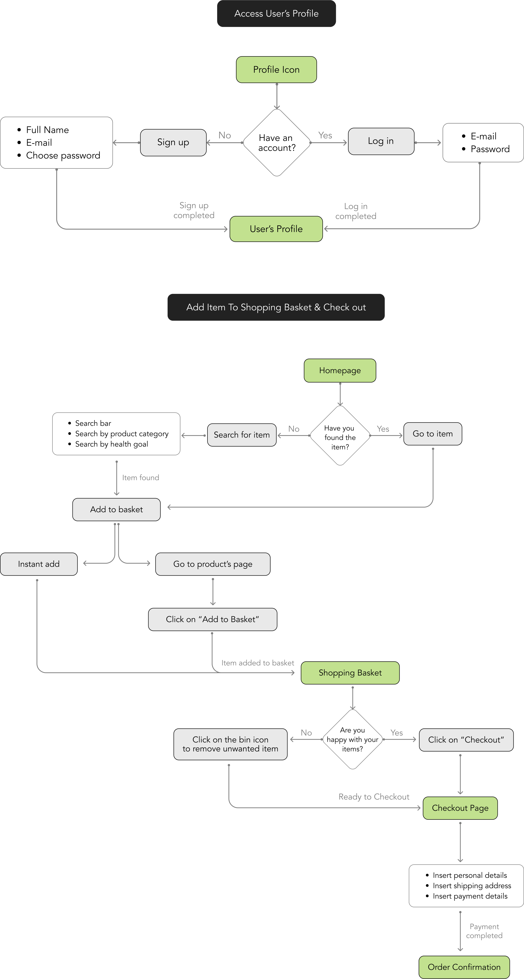 I developed a user journey showing the routes users will take to reach specific goals on the website, to ensure a seamless navigation experience across the entire website.