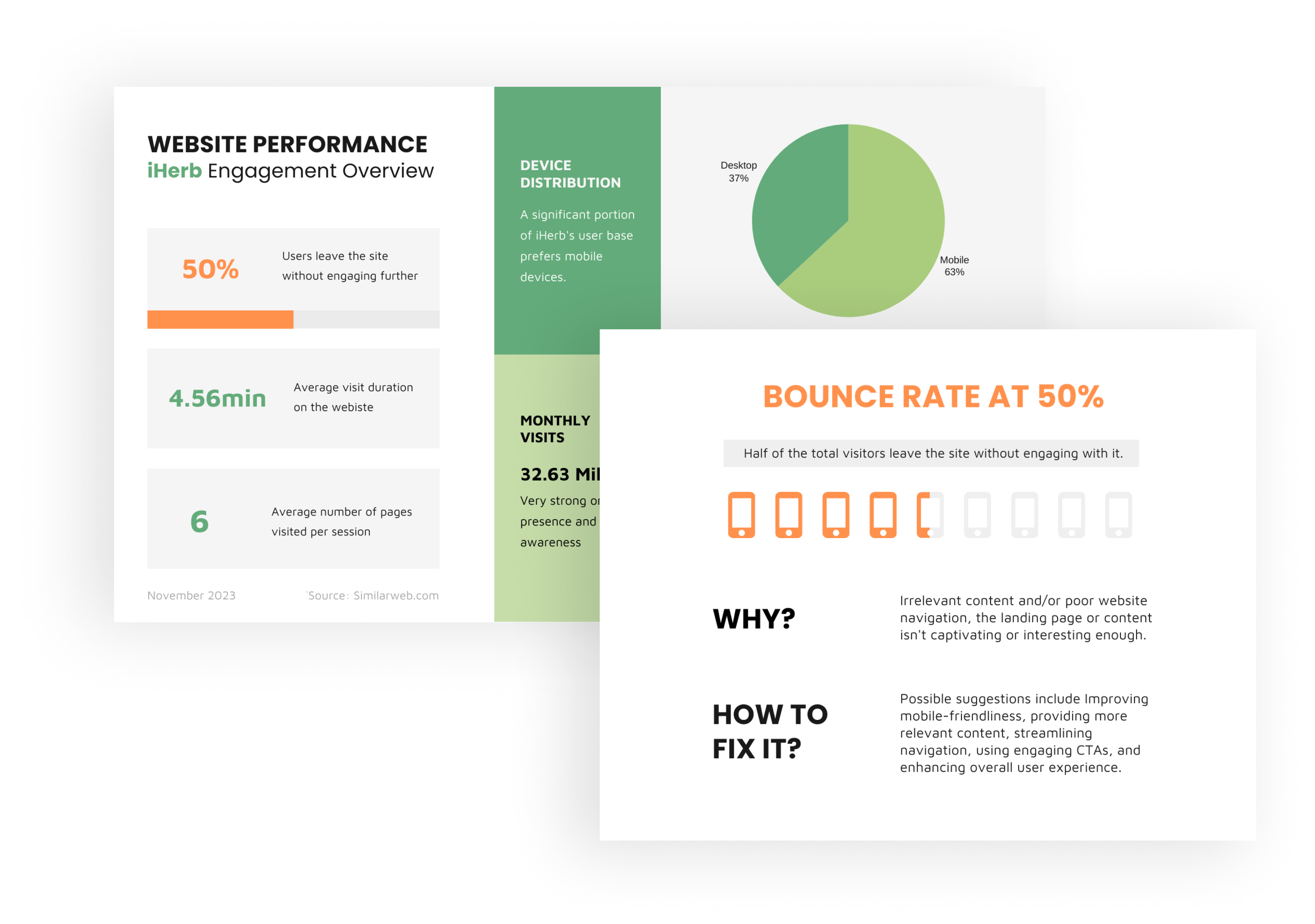 To gain insights into consumer’s behaviours, I conducted a crucial quantitative analysis that involved two primary steps: a thorough assessment of the current iHerb website's performance and a study of the current market trends within the health e-commerce sector.