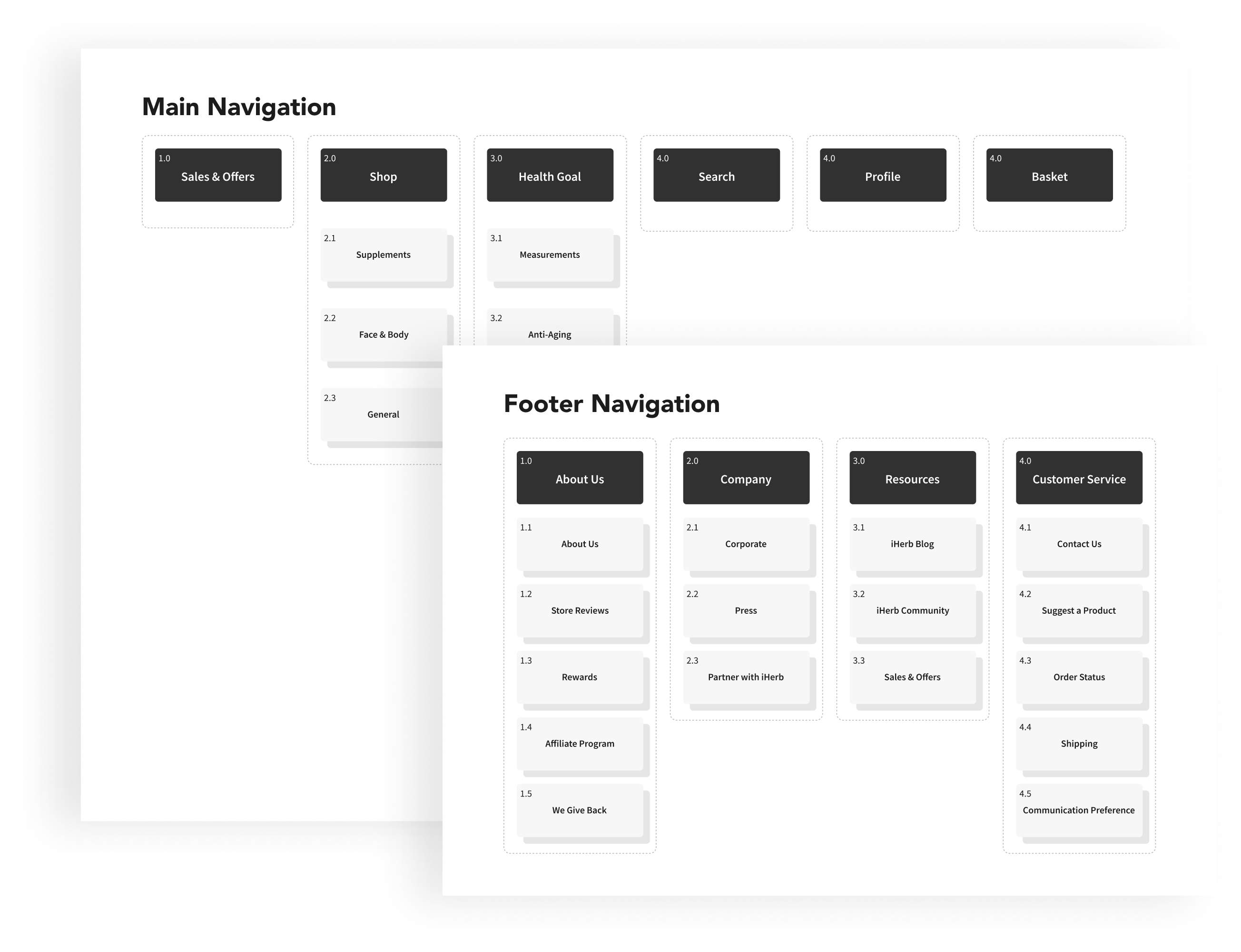Respondents have mentioned the menu displays an overwhelming amount of categories and products to click on. I developed a site map to show the structure of a new menu, with a focus on simplicity and quick navigation.