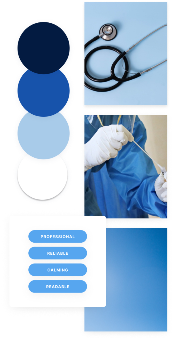 After careful consideration, we decided to opt for the first colour palette. Blue is often associated with trust and reliability; in a healthcare context, using blue can convey a sense of professionalism and dependability, helping users feel more secure and reassured.