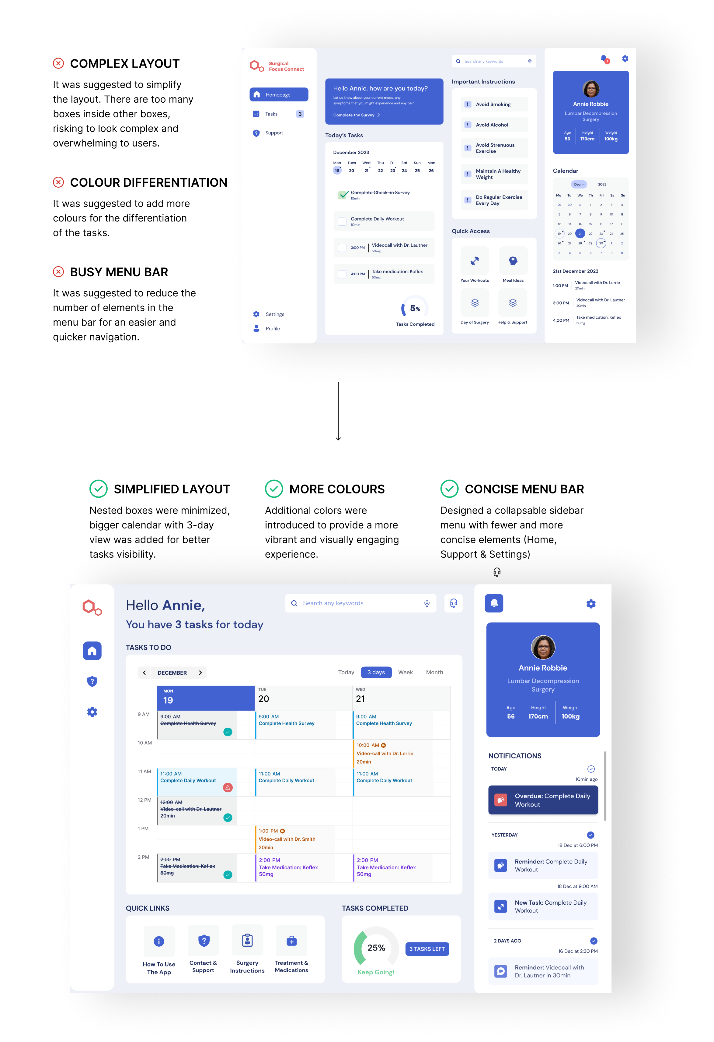 Intuitive User Experience: We crafted an interface that guides users through their pre-surgery and post-operative care, focusing on simplicity and ease of use.