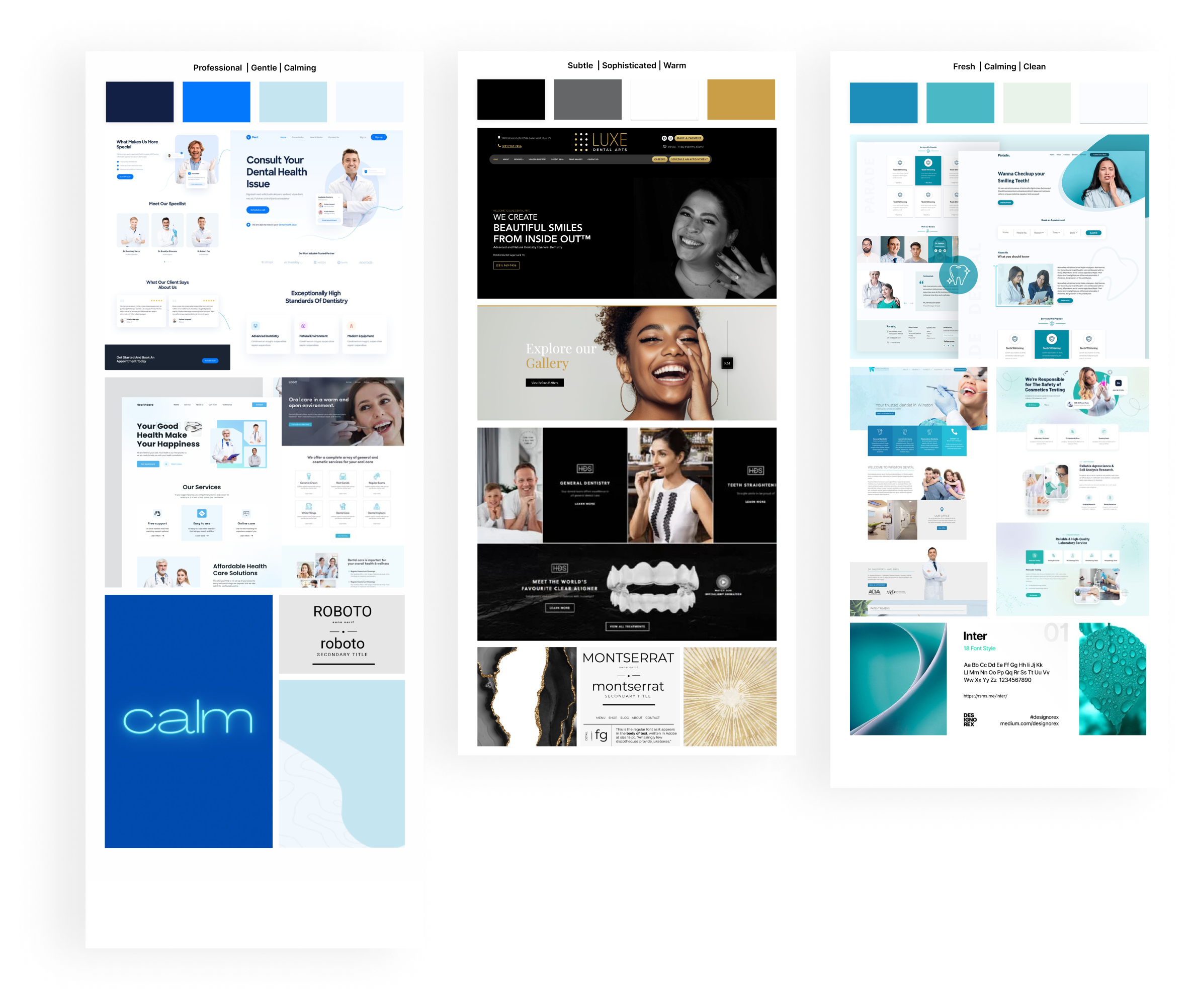 We created mood-boards to explore different visual directions, and selected 3 colour palettes that conveyed trust, professionalism, and warmth, aligning with healthcare standards — Blue, Teal, and Black with Gold accents.