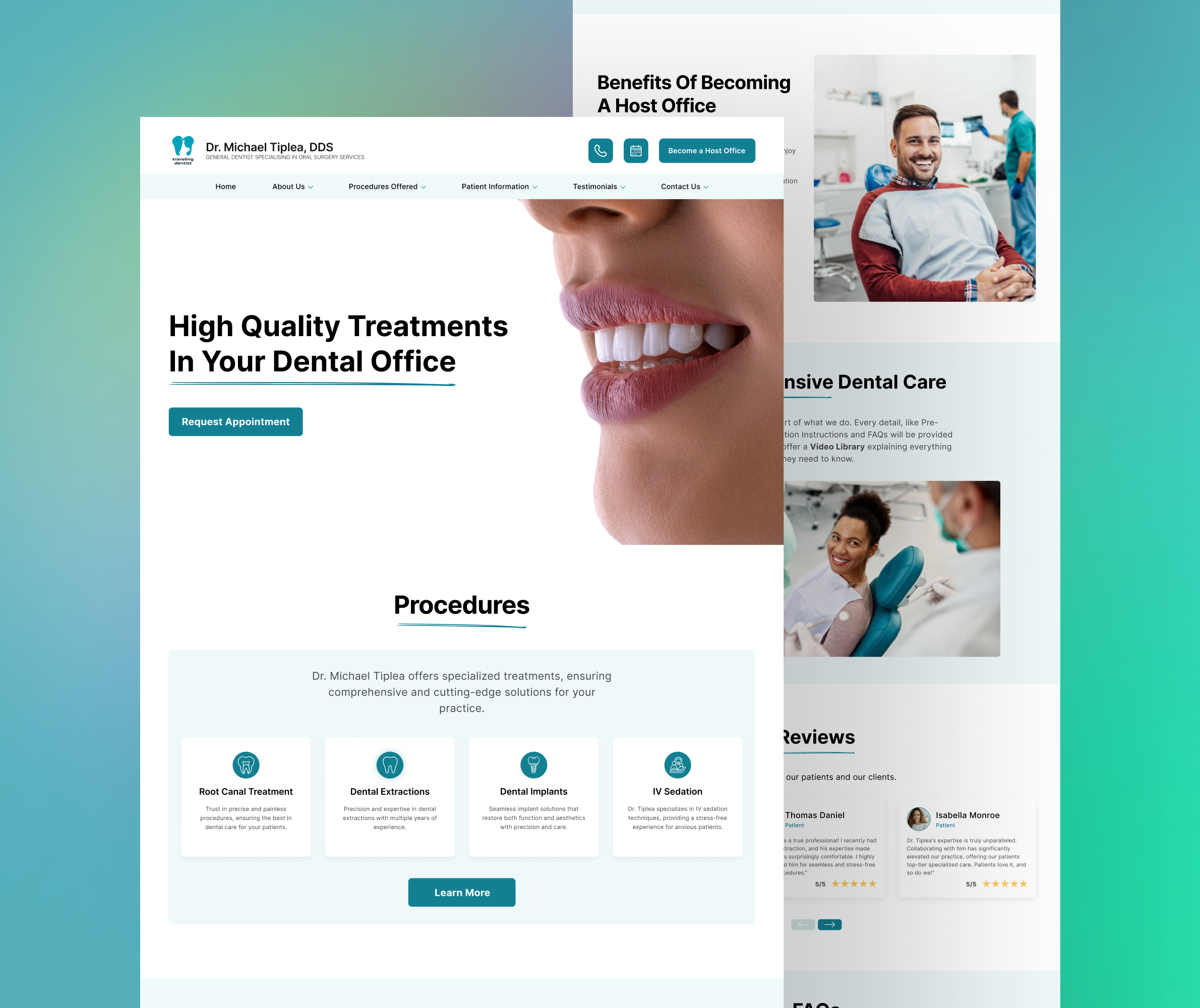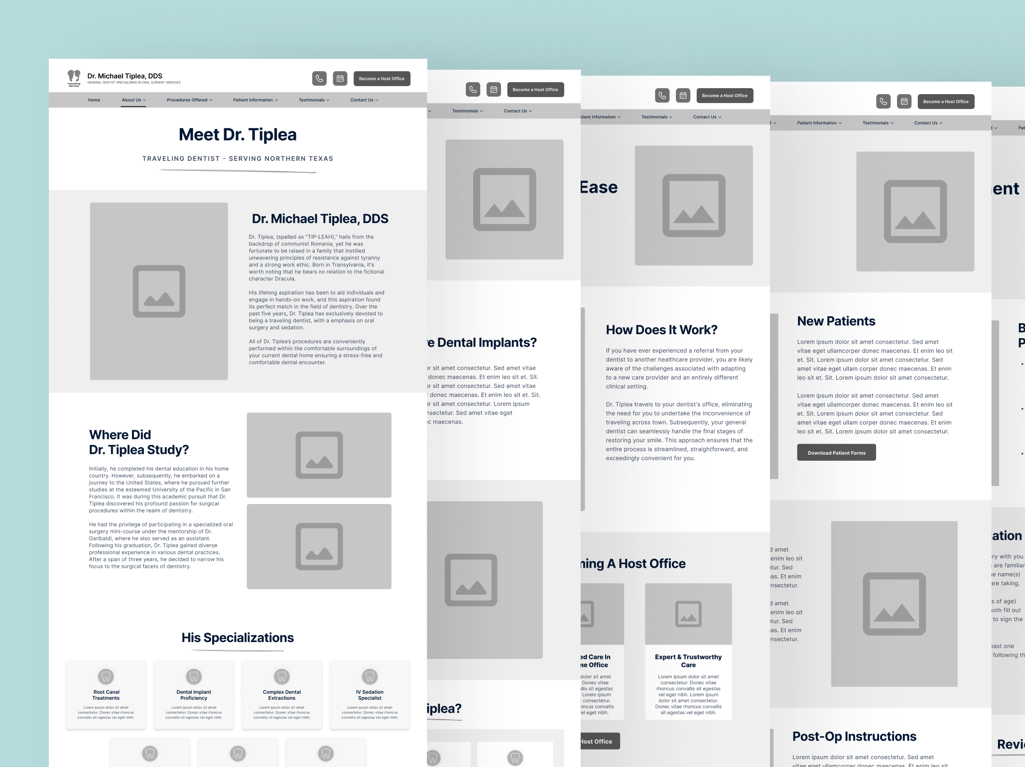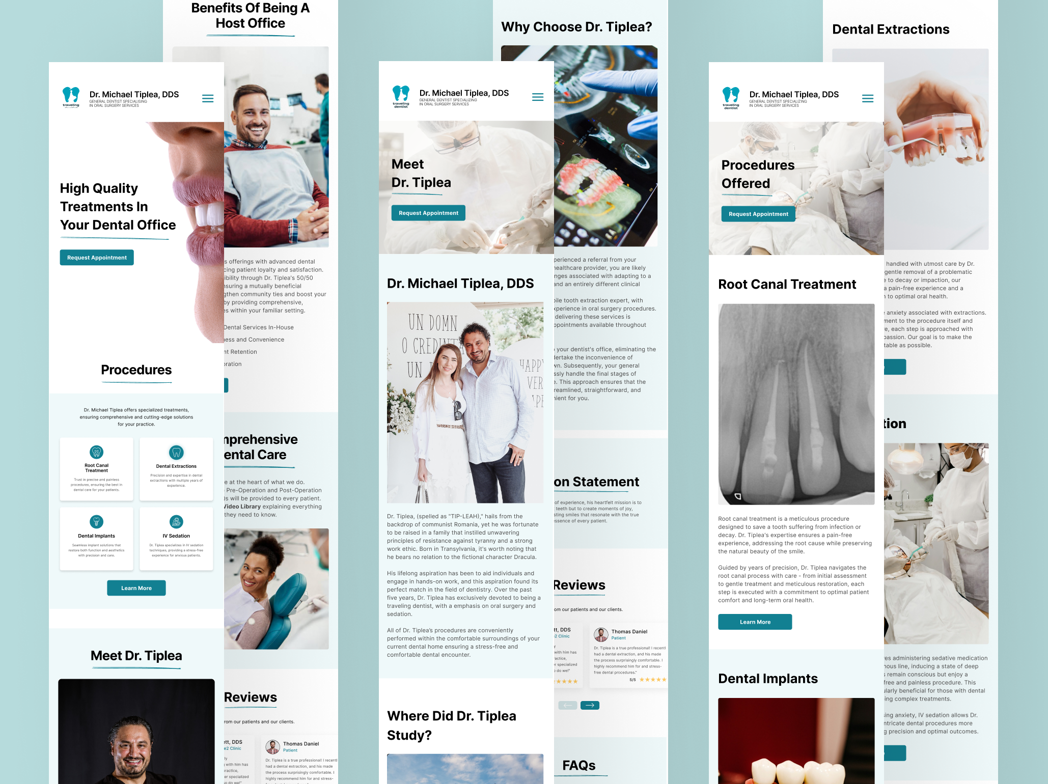 The "Travelling Dentist" project involved creating a digital platform for Dr. Michael Tiplea, a dental specialist offering mobile oral surgery services across Texas, USA, who was looking to expand his reach and improve service accessibility. The project's objective was to design an intuitive, user-friendly website that effectively communicates Dr. Tiplea's services and facilitates appointment scheduling for dental offices.